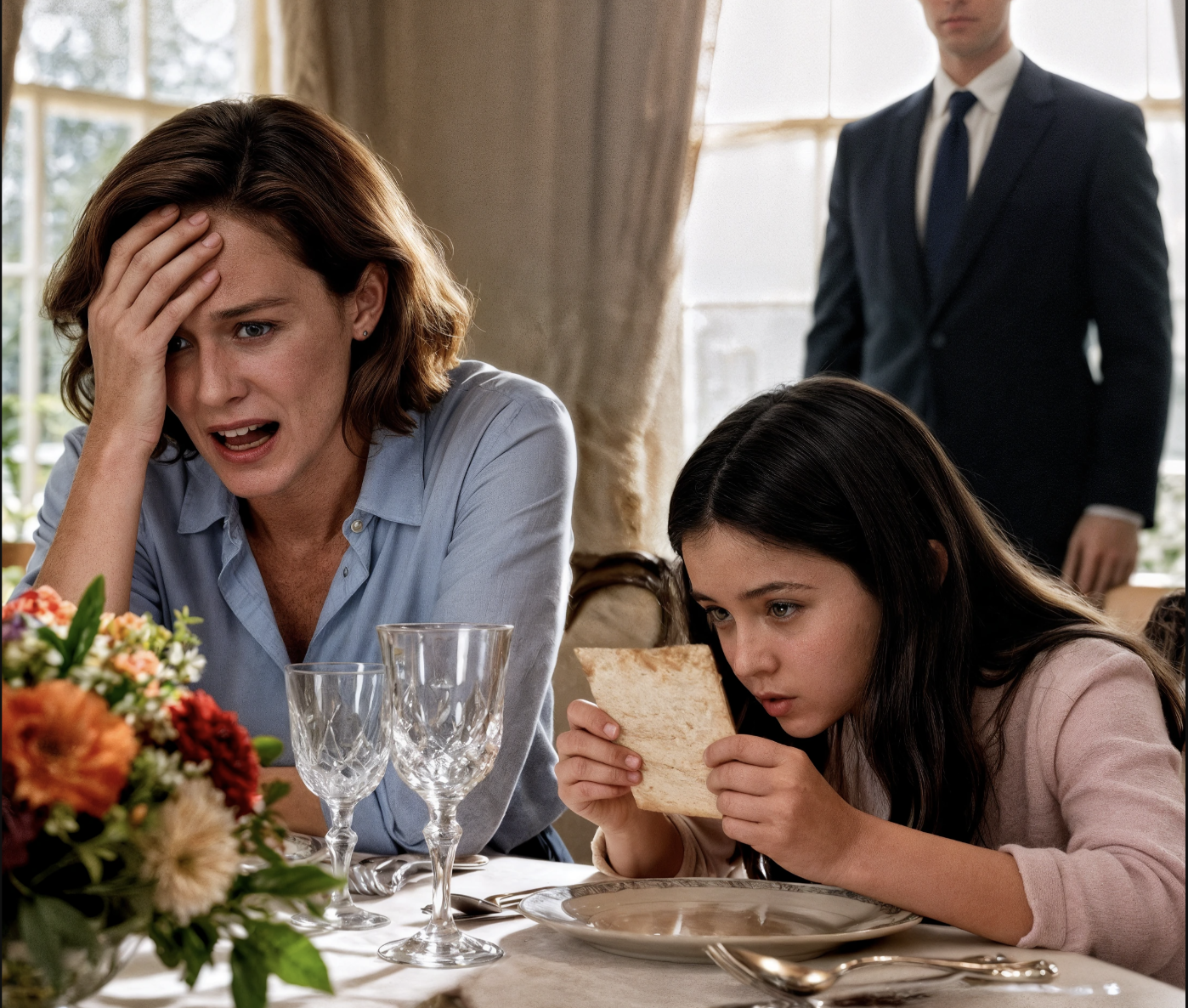 Pendant le dîner, ma fille a fait doucement glisser devant moi un petit papier plié. Il y était écrit : « Fais semblant de te sentir mal et quitte la table. » Je ne comprenais pas — mais quelque chose dans son regard m’a donné envie de lui faire confiance. Alors j’ai fait ce qu’elle disait et je suis sortie. Dix minutes plus tard… j’ai enfin compris pourquoi elle m’avait prévenue.