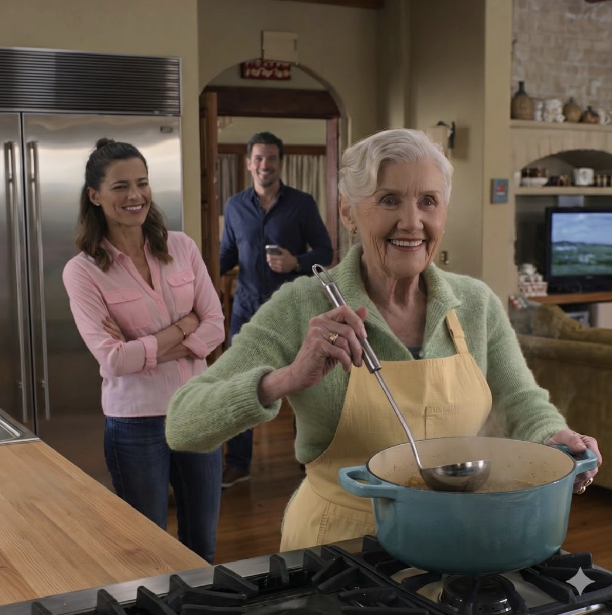 Pendant que je remuais une marmite de soupe pour toute la famille, ma belle-fille s’est approchée et a soufflé : « Qui t’a dit de cuisiner comme ça ? » Mon fils gardait les yeux rivés sur la télé, faisant comme s’il n’avait rien vu. Quelques minutes plus tard, un fracas a retenti dans la cuisine. Et à partir de cet instant précis, tout, dans cette maison, a commencé à se remettre en place.