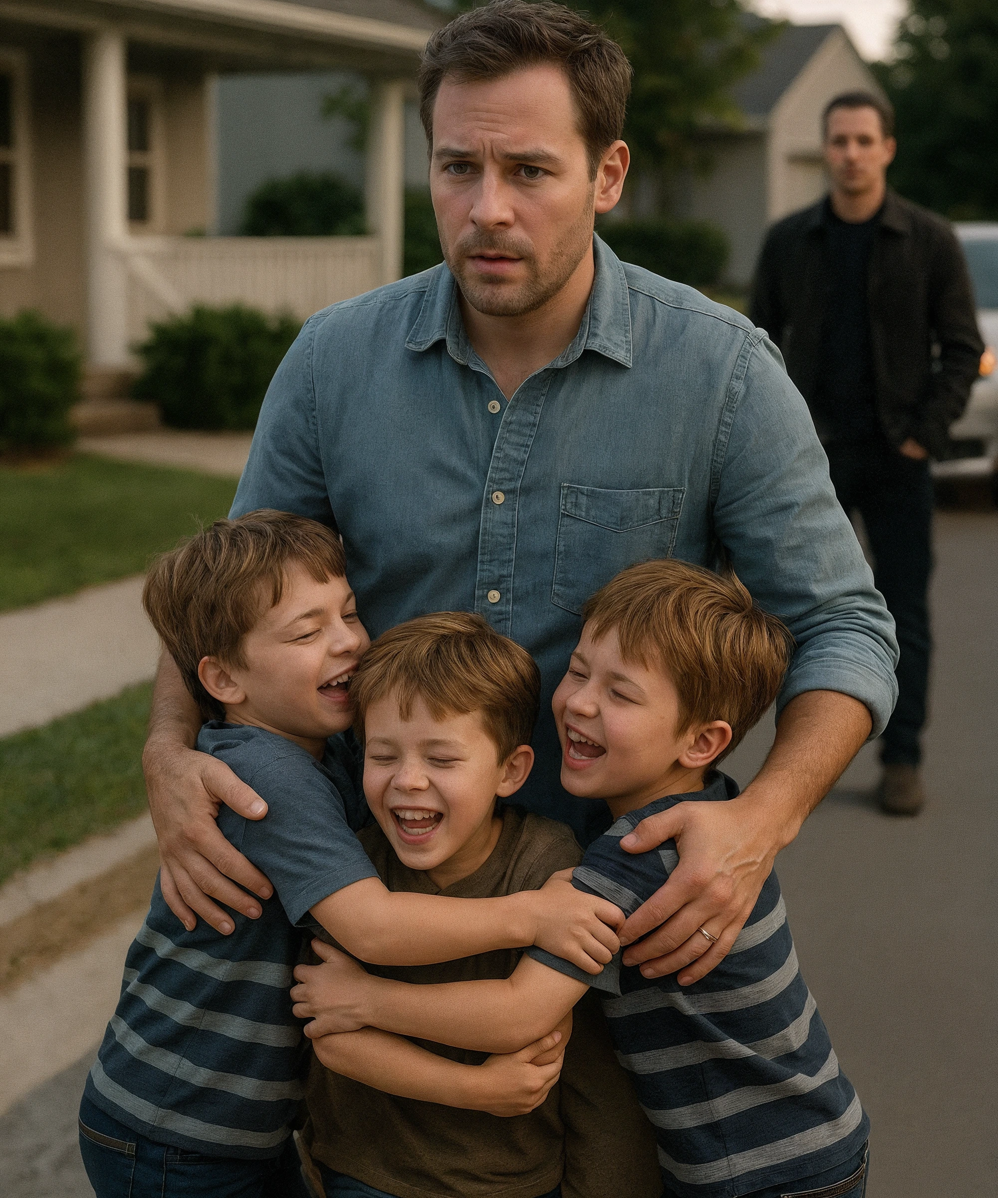 Les garçons — Ethan, Liam et Noah — couraient déjà vers la maison, leurs sacs à dos rebondissant, riant de peinture aux doigts et de goûters.