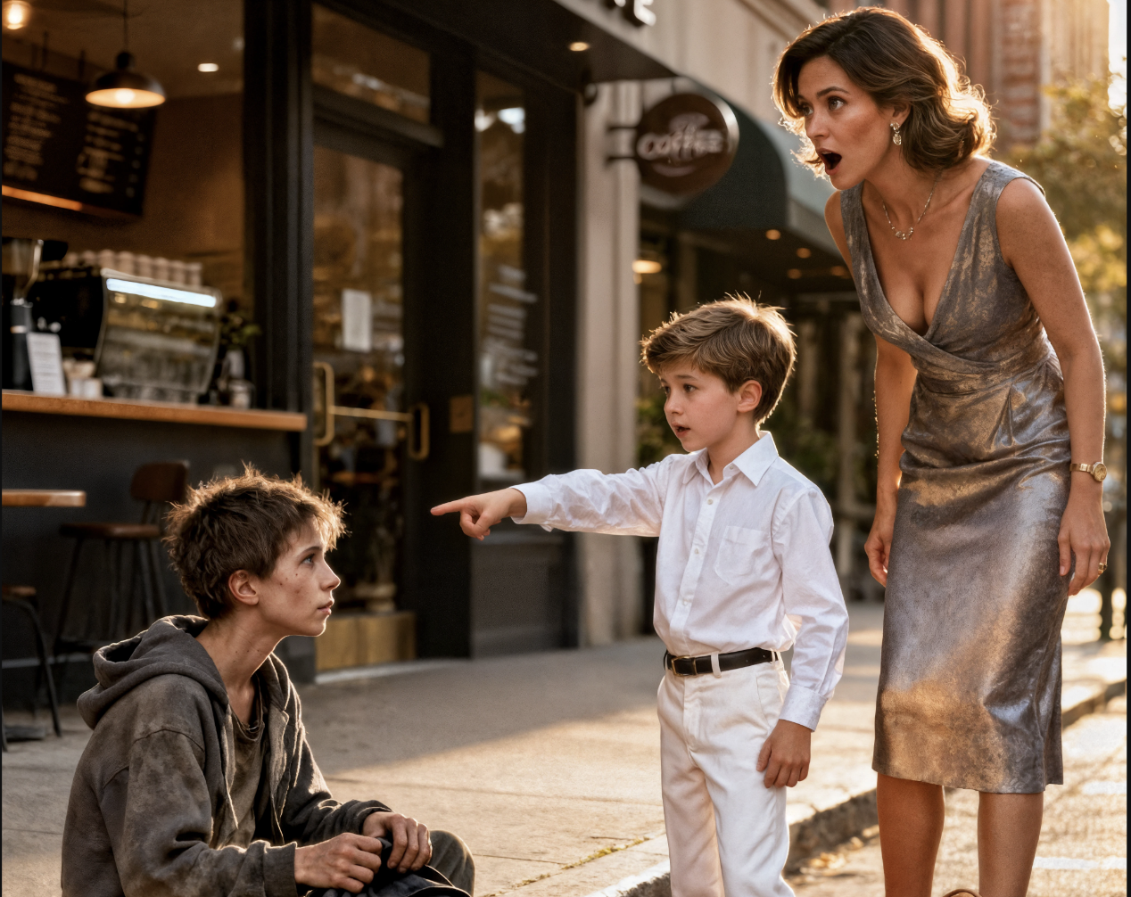 De l’autre côté, près du coin d’une boulangerie, un petit garçon était recroquevillé sous un parapluie cassé. Ses vêtements étaient trempés, ses cheveux emmêlés et collés. Il mangeait ce qui restait dans un papier de sandwich jeté. Malgré la crasse, quelque chose chez lui était étrangement familier — les mêmes yeux brun profond, le même menton à fossette, la même douce courbe de la bouche.