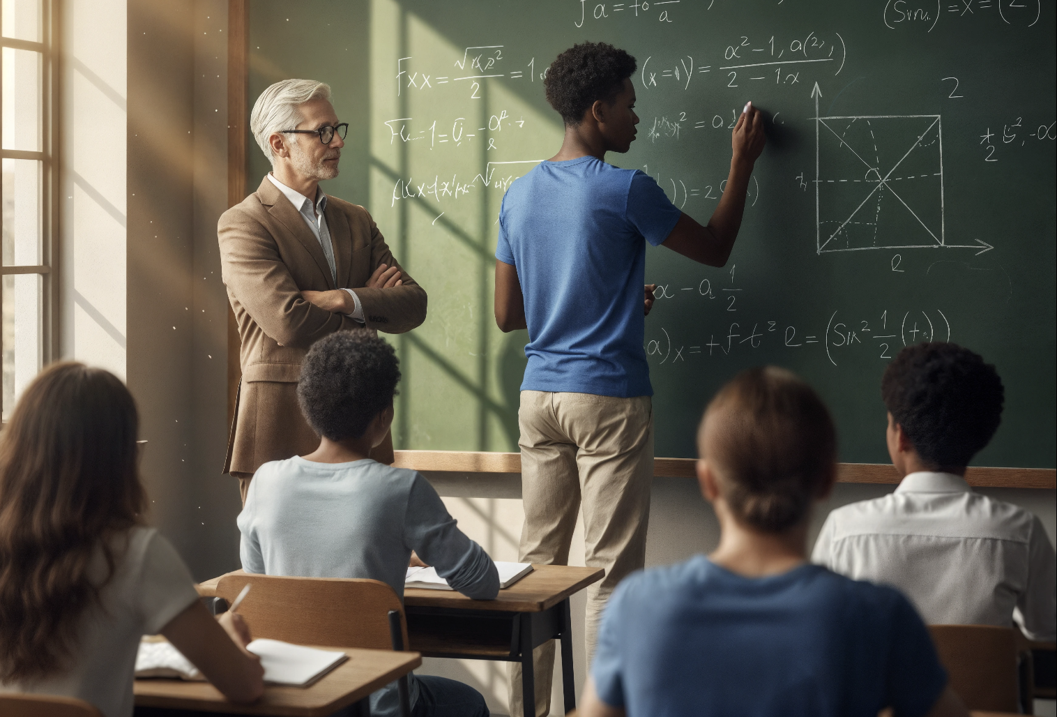 Le soleil de l’après-midi filtrait à travers les hautes fenêtres de la salle de maths avancées du collège Roosevelt. La poussière dansait dans la lumière, et les pupitres rayés d’entailles racontaient des années d’examens et de ratures.