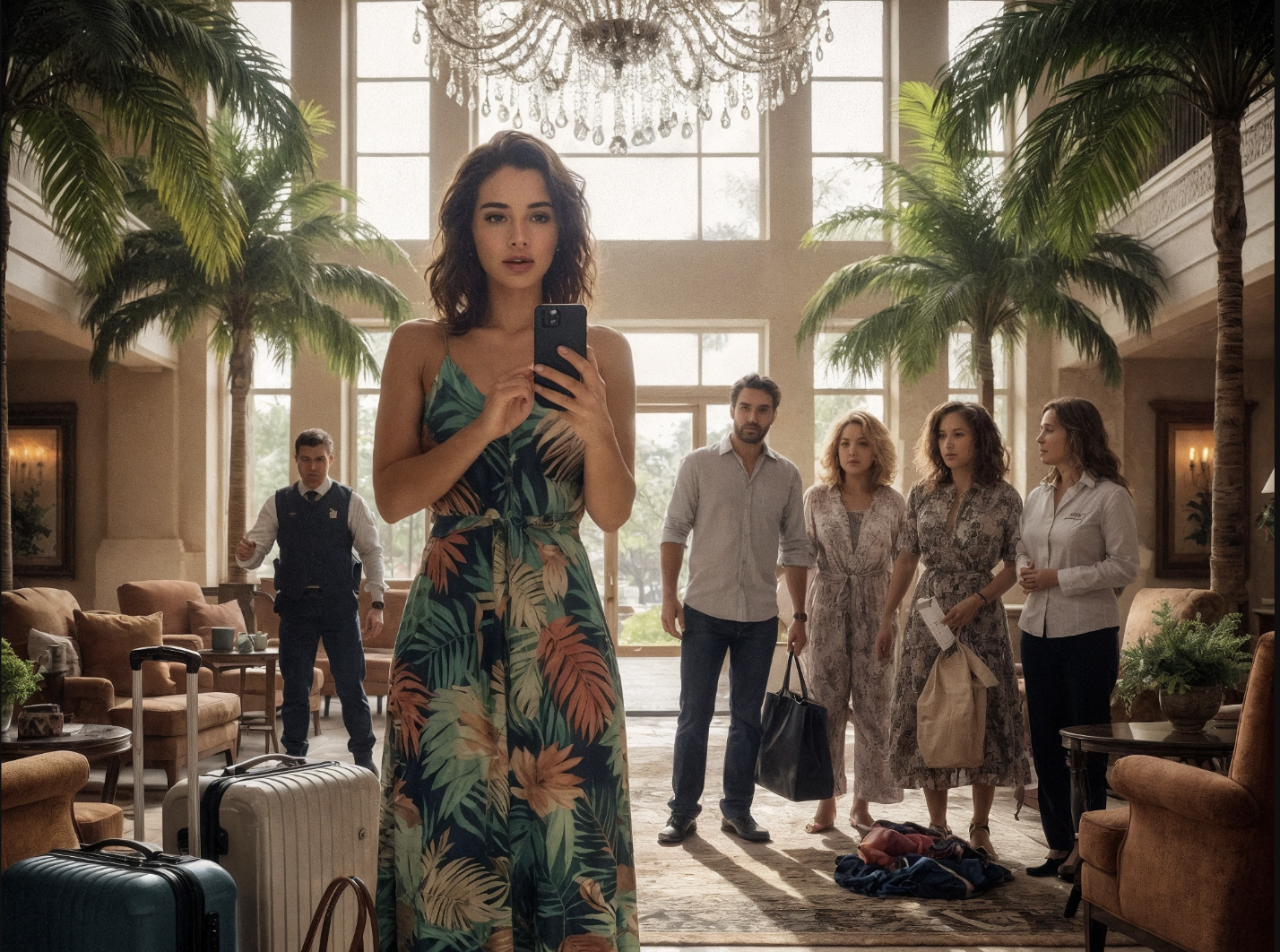 Quelques dizaines de minutes plus tard, l’ascenseur s’ouvrit et la scène qui se déroula fut plus douce que n’importe quel coucher de soleil tropical. Les voilà, les magnifiques Sterling, escortés calmement mais fermement par la sécurité de l’hôtel. Judith était rouge de colère, gesticulant hystériquement. Chloe pleurait — de honte ou de fureur, je ne sais pas. Et Tom… mon mari, Tom, paraissait complètement perdu, regardant autour de lui comme un animal acculé ; les valises qu’ils avaient emportées étaient maintenant empilées à côté d’eux dans le hall.
