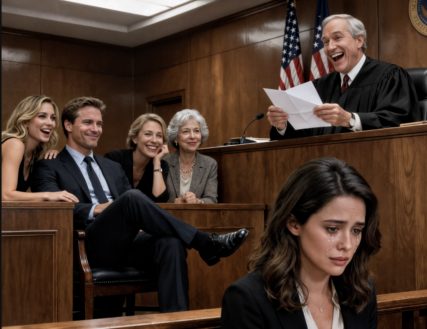 Lors de l’audience de divorce, mon mari était assis, les jambes croisées, l’air suffisant : — *« Tu ne toucheras plus jamais à mon argent. »* Sa maîtresse a renchéri : — *« C’est vrai, mon chéri. »* Sa mère a ricané : — *« Elle ne mérite pas un seul centime. »* Le juge a ouvert la lettre que j’avais envoyée avant le procès, l’a lue quelques secondes… puis a éclaté de rire. Il a penché la tête et a murmuré : — *« Oh… ça, c’est intéressant. »* Leurs visages sont aussitôt devenus livides. Ils n’avaient aucune idée… que cette lettre avait déjà mis fin à leur petit jeu.