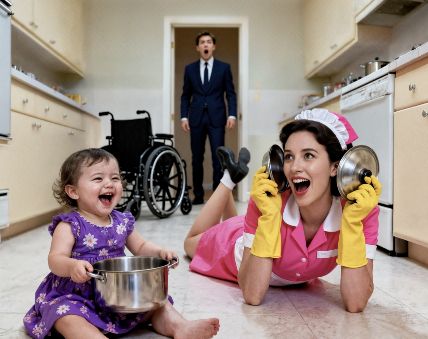 Après ça, la maison changea complètement. Ce n’était plus un manoir silencieux. C’était une maison bruyante, remplie de rires, de chansons et de petits pas. Alice, presque trois ans, courait dans le couloir en bois comme n’importe quel enfant. Personne n’aurait imaginé qu’elle avait passé ses premières années paralysée. Elle poursuivait la kiné pour renforcer ses muscles et prendre soin d’elle, et elle était heureuse parce que sa kiné, c’était sa mère.