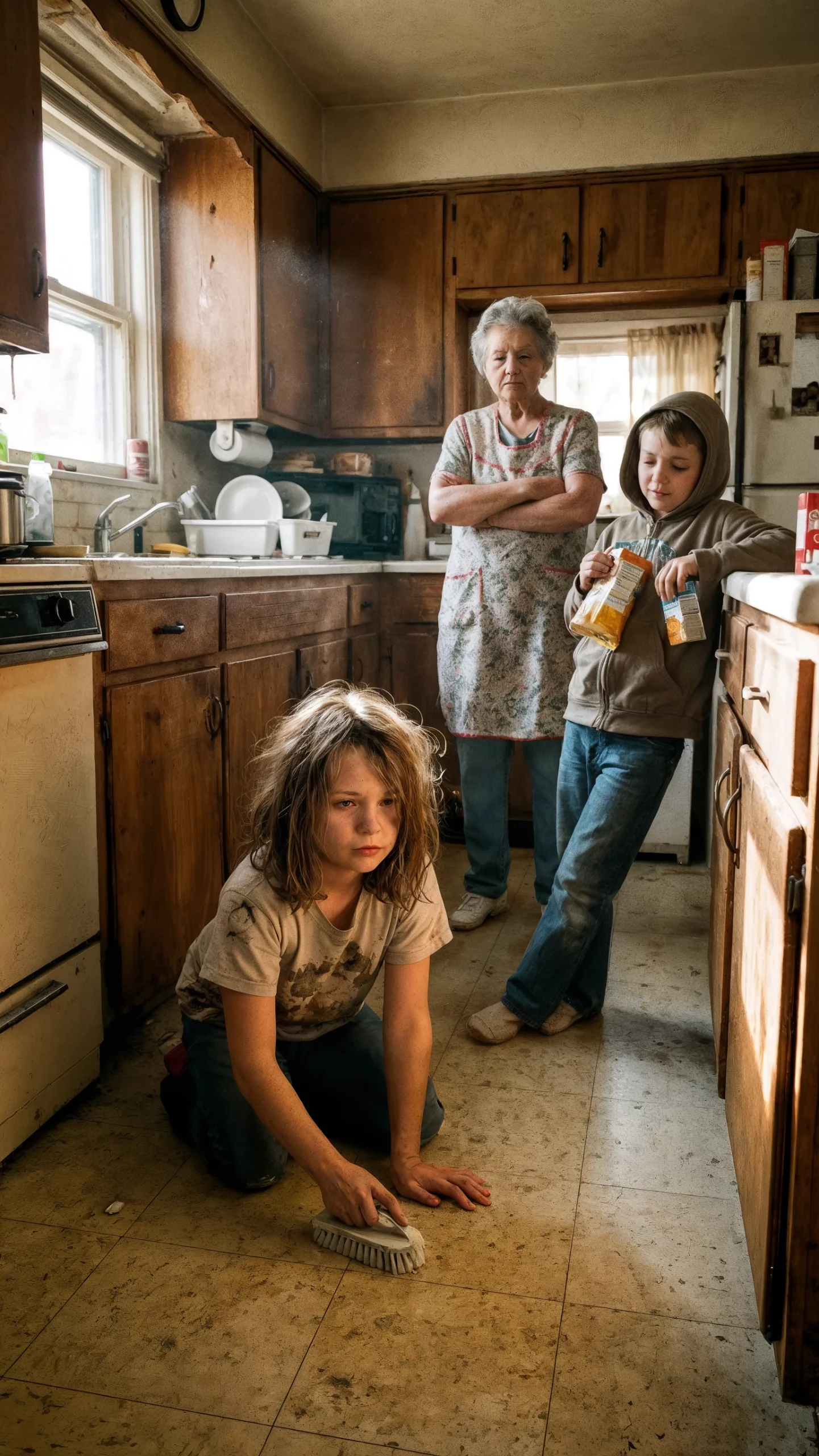 Pendant qu’Olivia frottait, Tyler et Madison étaient affalés sur le canapé, pancakes à la main, dessins animés à fond. Ils l’appelaient “Cendrillon”. Ils jetaient des emballages sur le sol fraîchement nettoyé et riaient quand elle devait les ramasser.