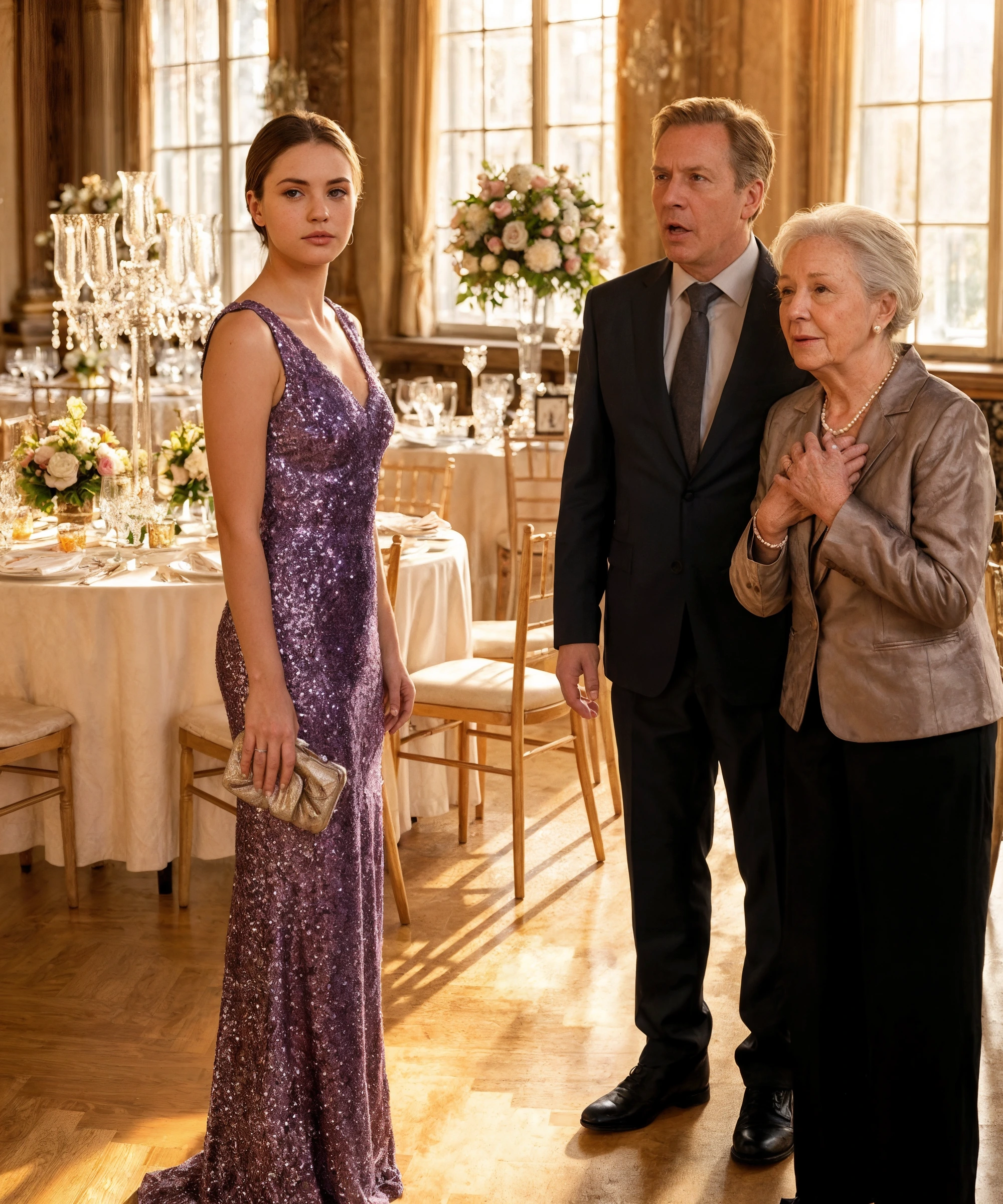 À l’intérieur, lustres, fleurs importées, porcelaine… tout semblait conçu pour rappeler à certains qu’ils appartenaient à ce monde, et à d’autres qu’ils n’y avaient pas leur place. Patricia avança lentement, tenant son sac emprunté comme s’il était une boussole.