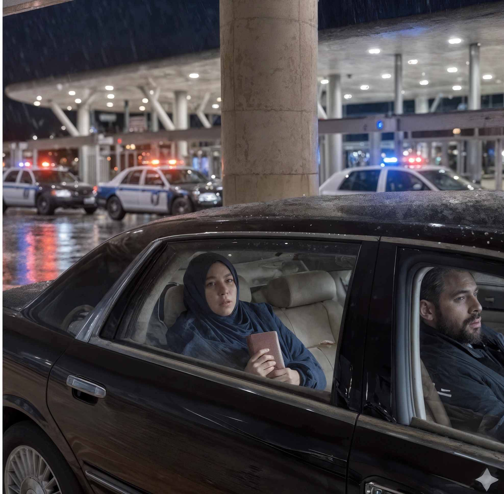 Des lumières bleues et rouges noyèrent la voiture de toutes parts. Trois véhicules de police surgirent du noir, pneus hurlants, et encerclèrent la berline dans un étau. Des agents en équipement tactique jaillirent, fusils braqués.