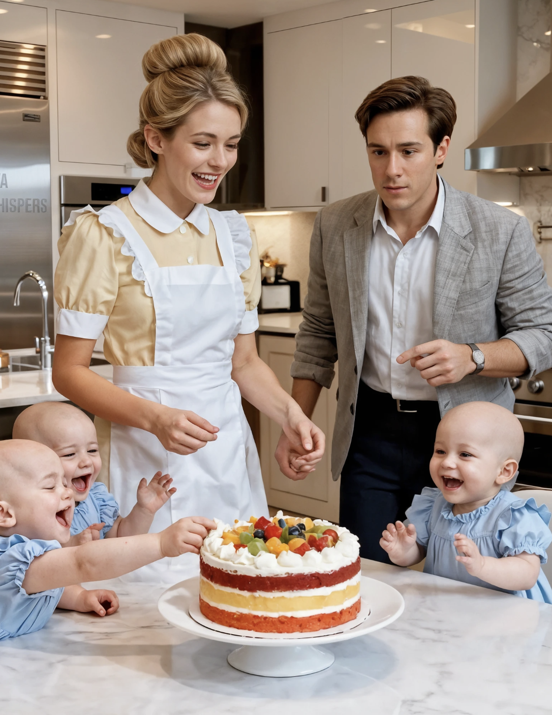 Au cœur de son immense cuisine de marbre, sous la lueur chaude de suspensions de designer, se trouvaient trois minuscules miracles : ses filles triplées, Sophie, Belle et Clara.