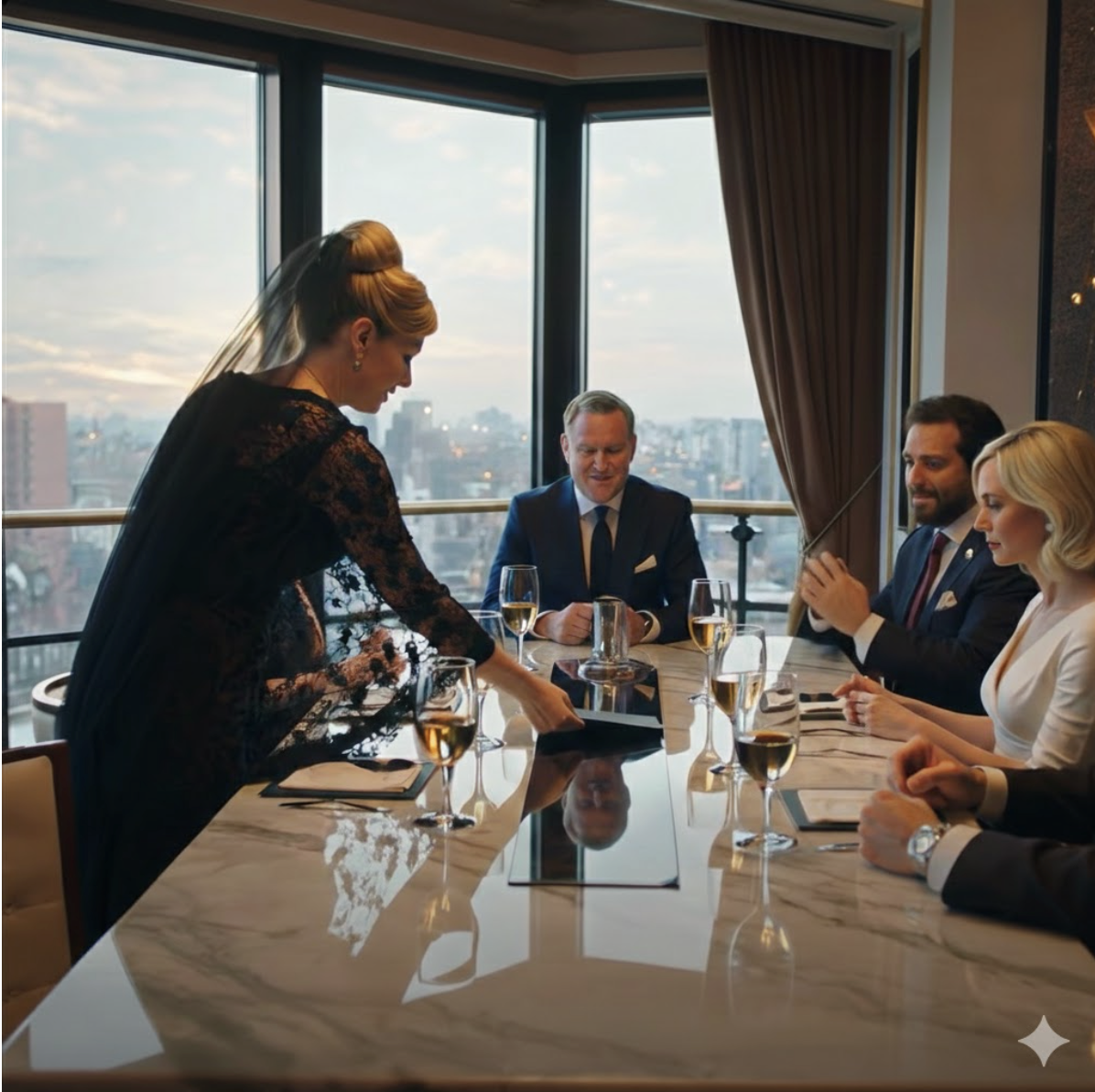 Le costume Tom Ford anthracite tombait à la perfection sur Jake Harrison — un bouclier taillé sur mesure, une armure d’arrogance qu’il portait comme un droit acquis. Debout au bout de la table dans le salon privé de Marcelos, il n’avait pas l’air d’un homme sur le point de détruire un mariage. Il avait l’air d’un homme prêt à faire son tour d’honneur.