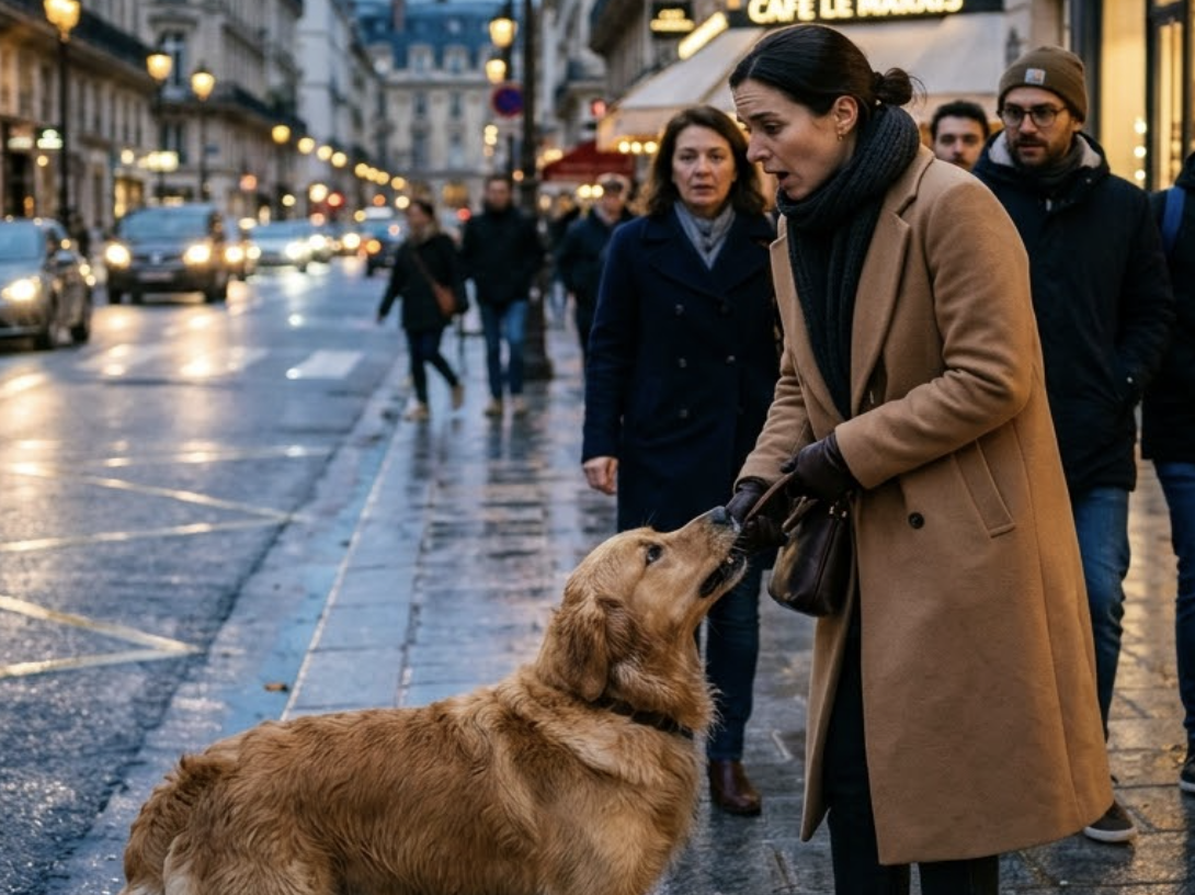 Ce n’était pas de l’agressivité. C’était de l’insistance—presque une détermination désespérée. Les yeux du chien restaient fixés sur les siens. Dans ce regard, il y avait quelque chose de bouleversant : de l’urgence, une supplique silencieuse.