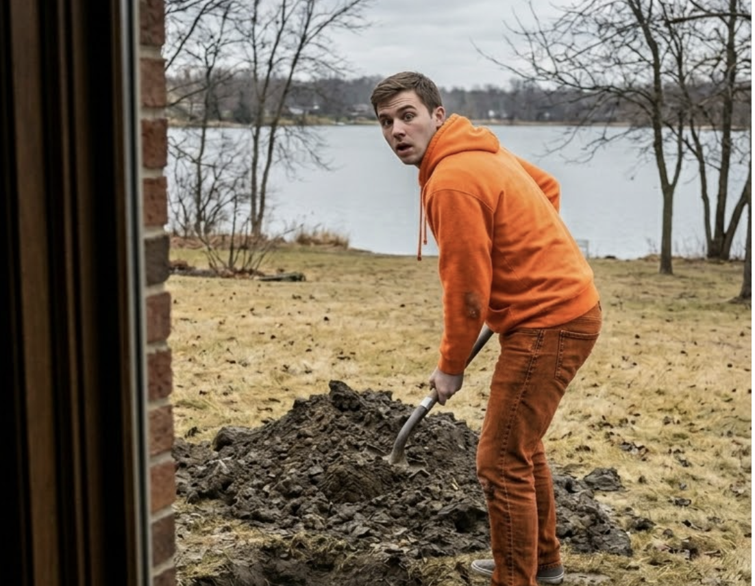 Il était là, debout à côté d’un large trou fraîchement creusé, enfouissant la terre.
